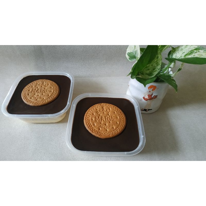 Dengan 4 lapisan : Coklat ganache yang lumer, whip cream, biskuit regal Dan puding busa