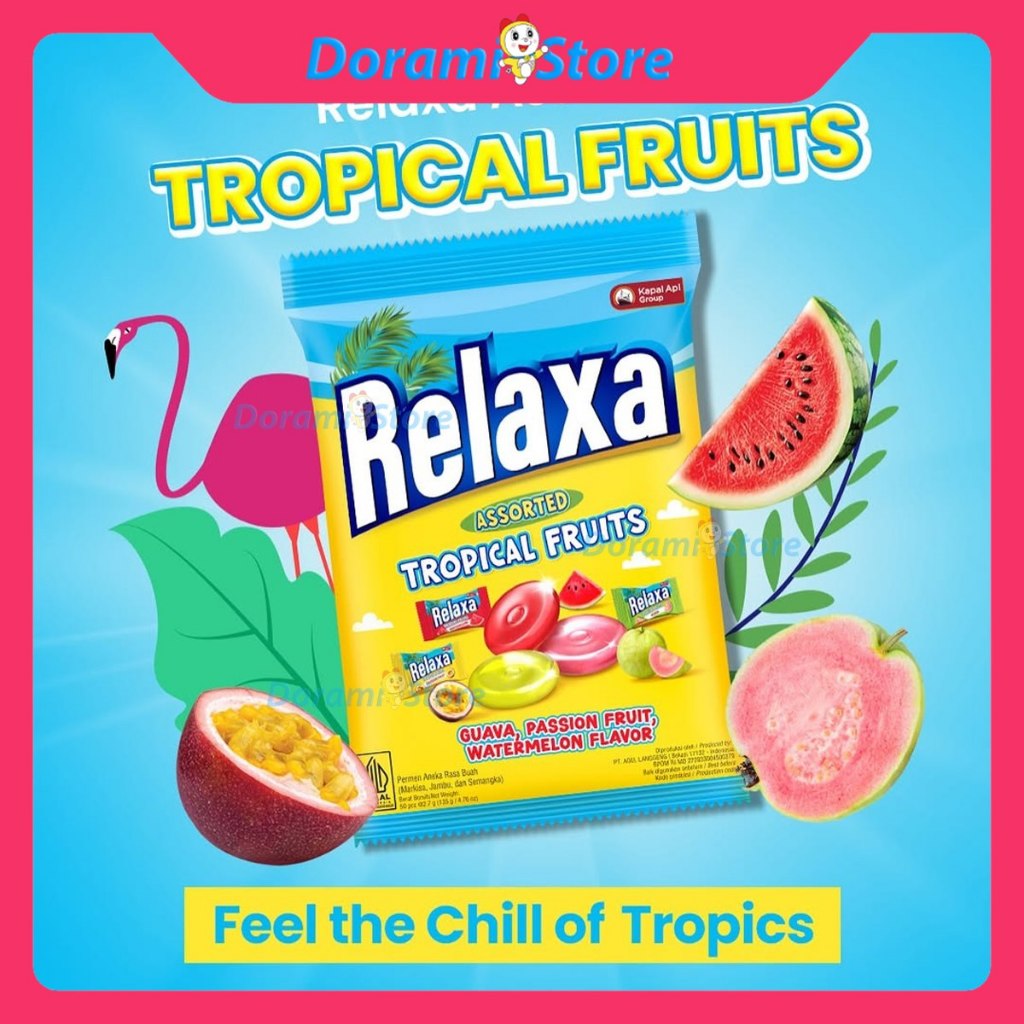 Variant baru dari Relaxa! Permen yang memadukan tiga rasa buah tropis favorit dalam satu kemasan praktis (Guava, Passion fruit dan Watermelon), Setiap gigitan memberikan kejutan rasa berbeda yang menyenangkan dan buat momen santai jadi lebih berwarna.