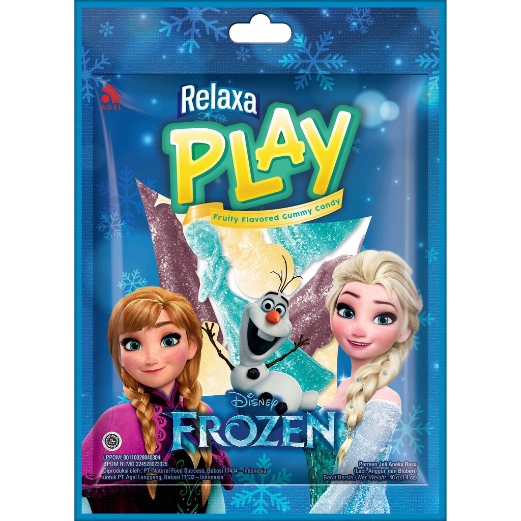 Relaxa Play adalah permen gummy dengan rasa buah segar dan memiliki bentuk karakter Frozen yang disukai oleh anak-anak.