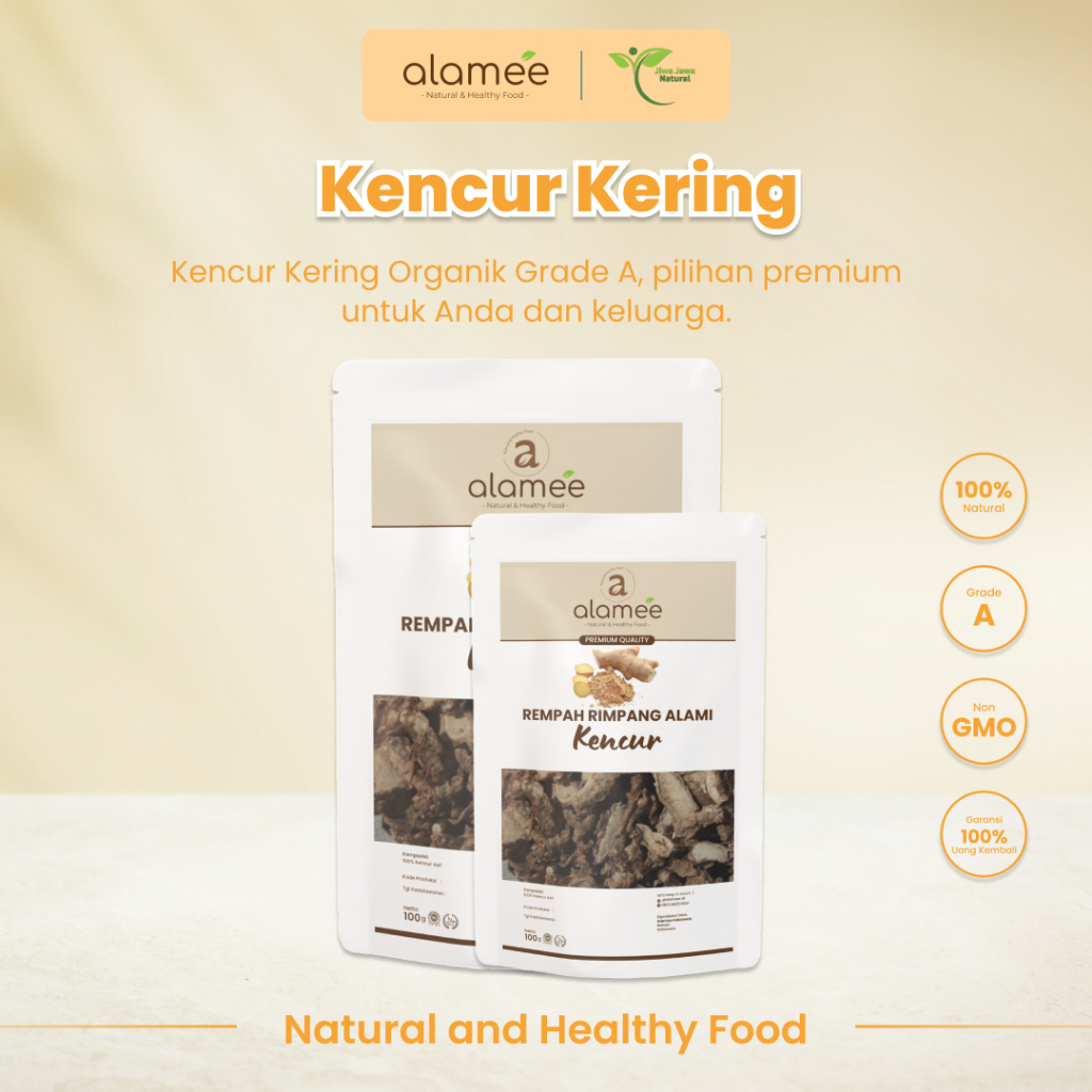 Kencur Bubuk Alamee terbuat dari Kencur asli tanpa campuran dan pengawet sehingga aman untuk dikonsumsi dan dengan citra rasa yang berkualitas tinggi.