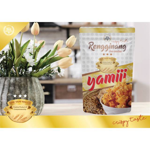 Dibuat dengan bahan pilihan berkualitas dan diproses dengan maksimal. Sehingga tercipta rengginang yang renyah serta mempunyai cita rasa yang tinggi.