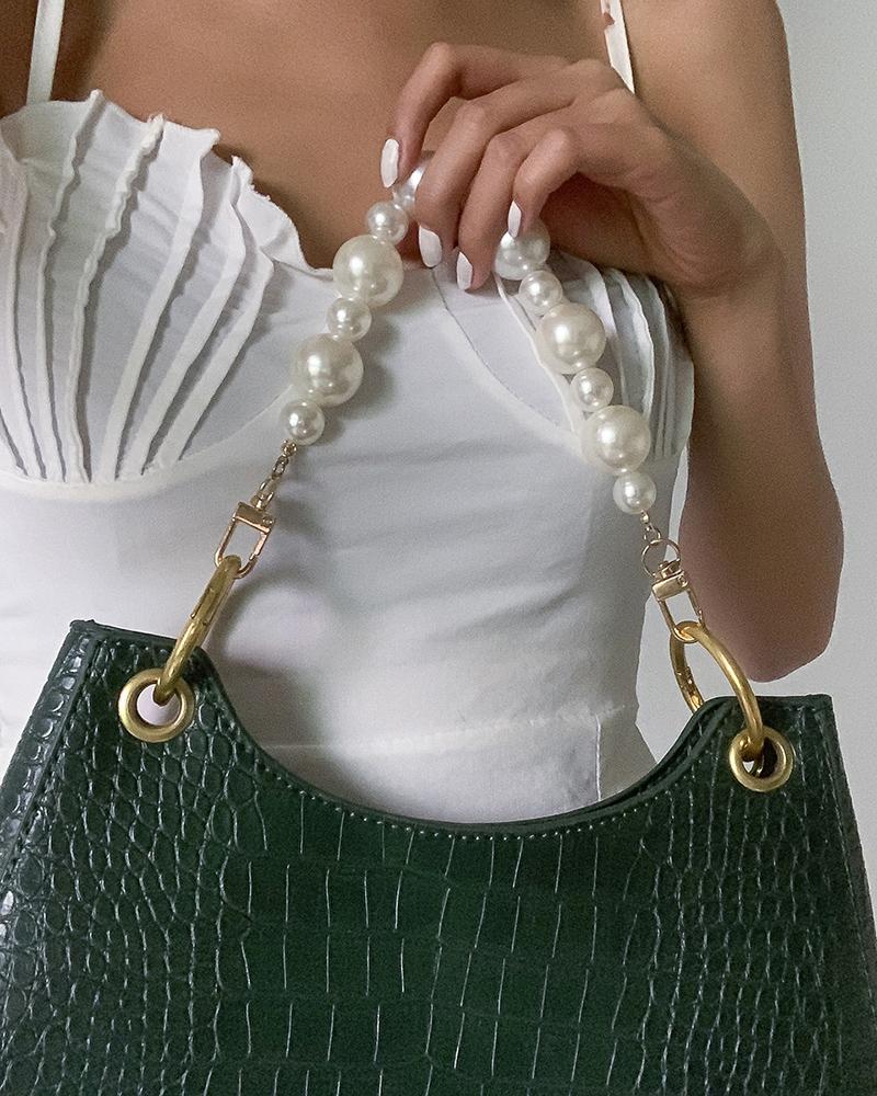 Replacement Pearls Chain Strap Shoulder Bag Accessories With Metal Buckles, White