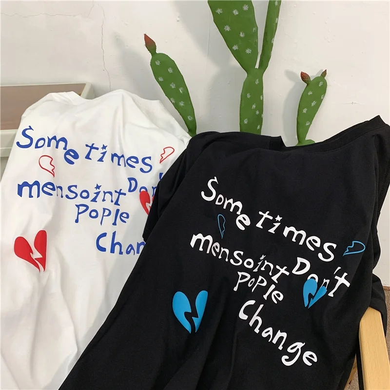 Resuapre модная свободная парная хлопковая футболка с коротким рукавом с принтом сердец и букв, черно-белая футболка с коротким рукавом