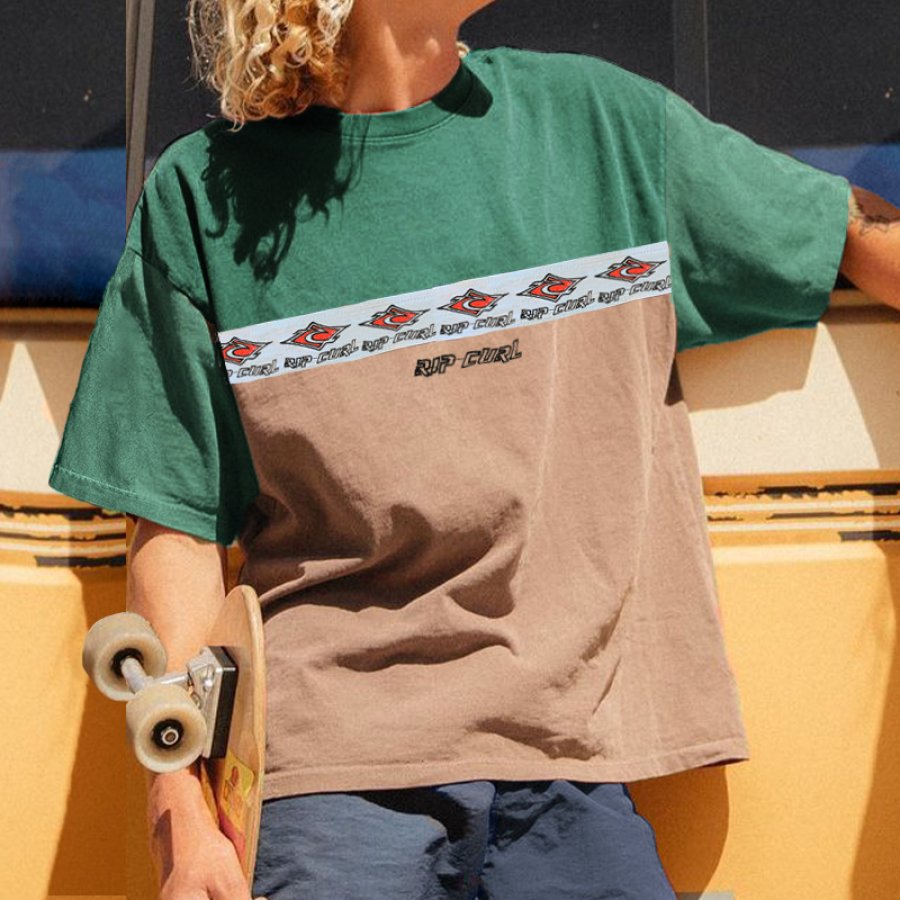 t-shirts,retro contrast rip-curl print surf t-shirt