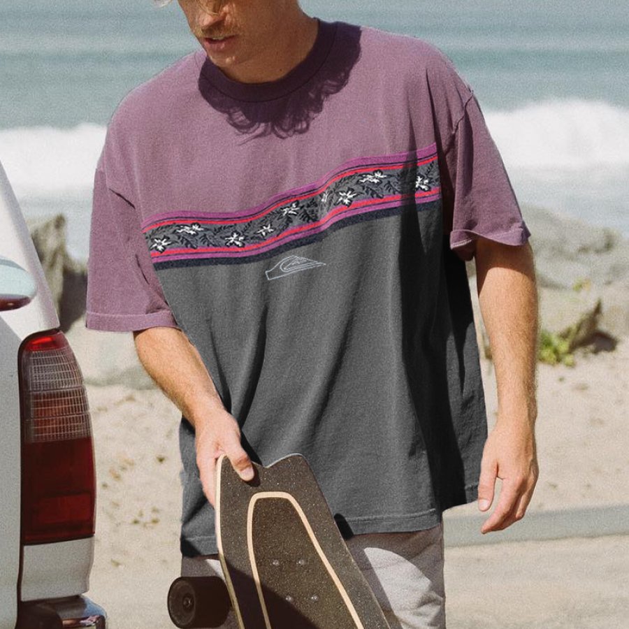 Retro Contrast Round Neck Surf T-Shirt
