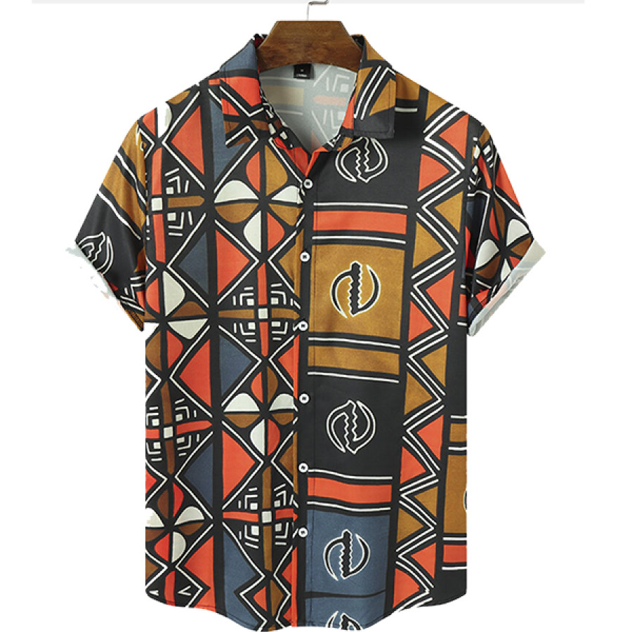 tees & shirts,retro geometric plaid print men's beach shirt