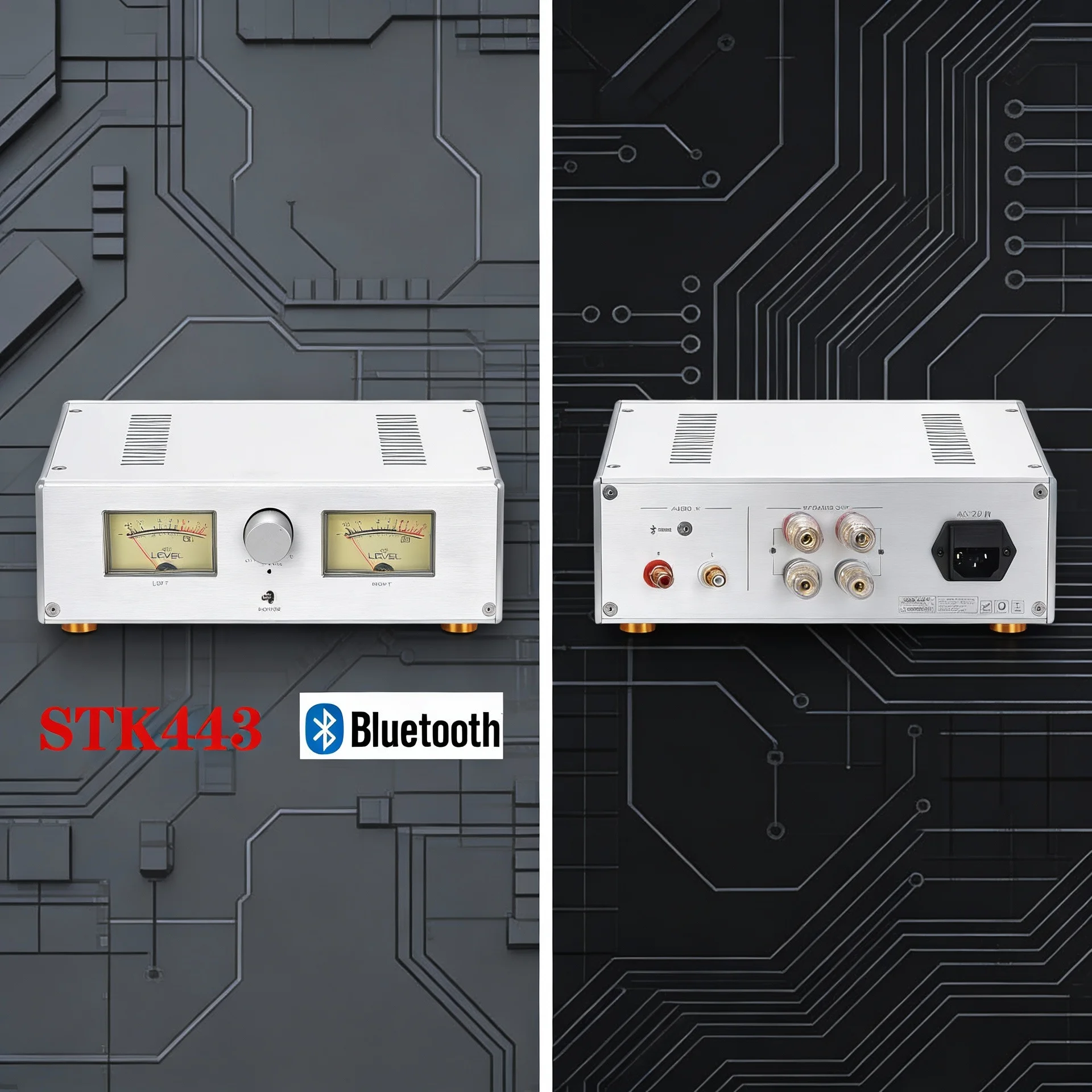 Retro HiFi Power Amplifier STK443 Thick Film Module Bluetooth 5.0 Dual VU Meters Complete Unit