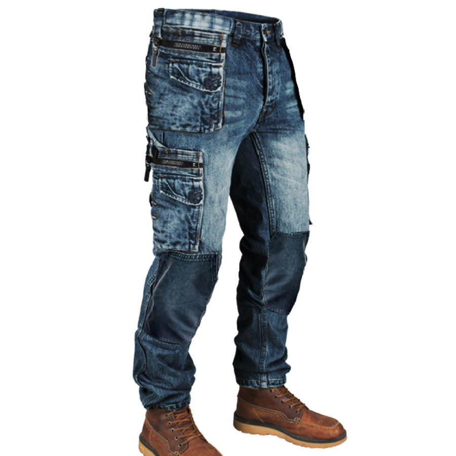 Retro Mens Multi Pocket Outdoor Casual Jeans