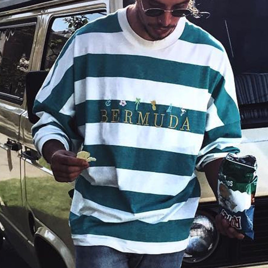 Retro Oversized Neutral Striped Round Neck Sweatshirt