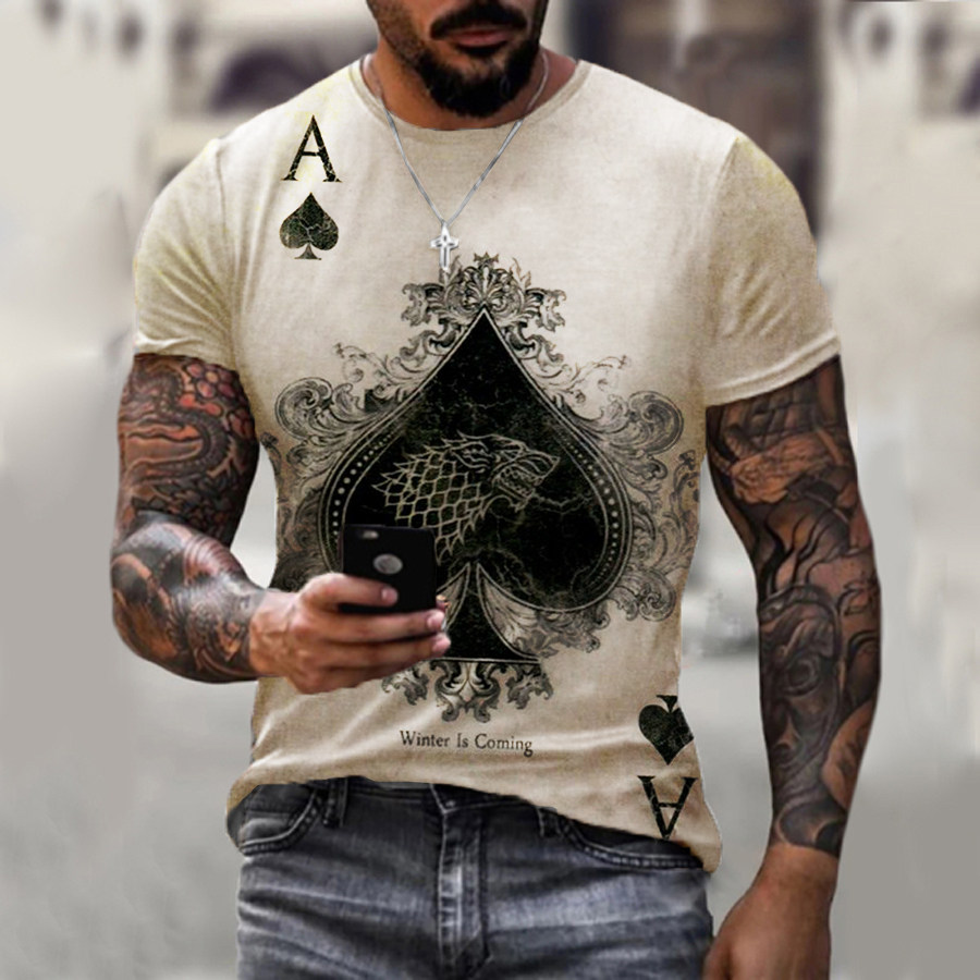 t-shirts,retro poker print short-sleeved t-shirt