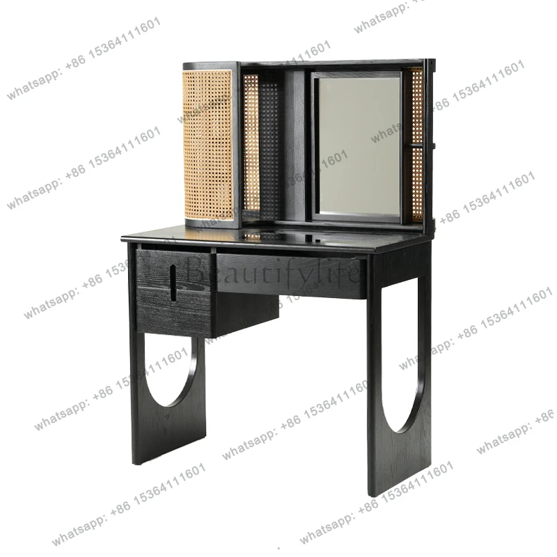 Retro Rattan Dressing Table Bedroom Storage Integrated Small Apartment Makeup Table