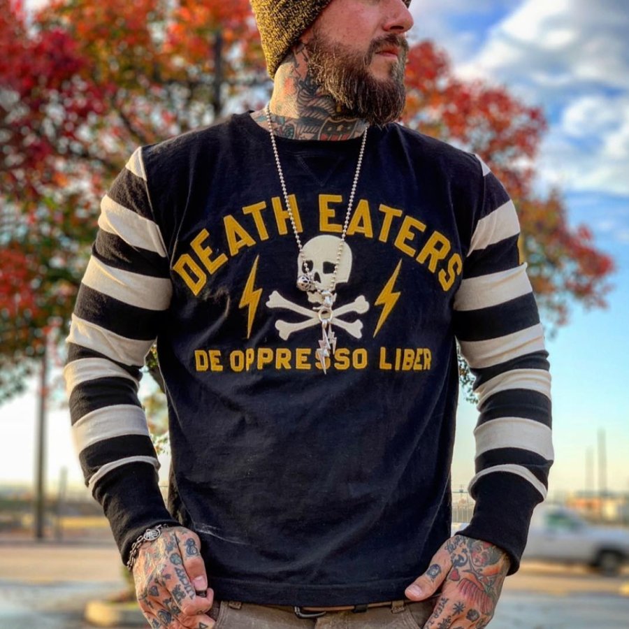 Retro Sleeve Striped Round Neck Shirt