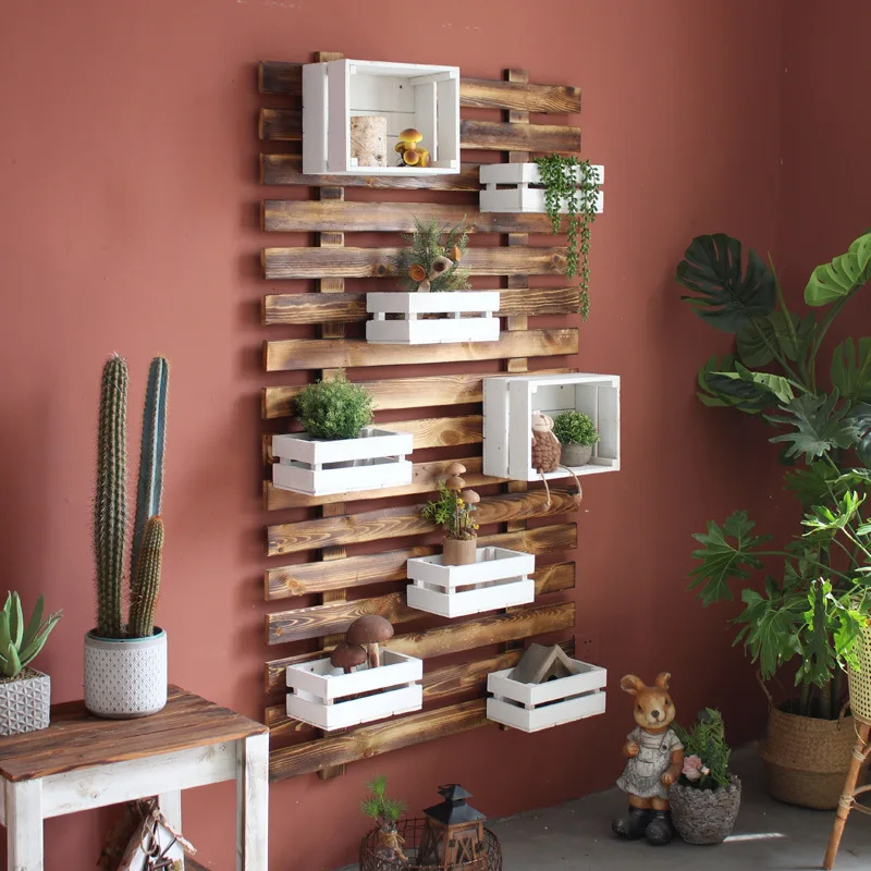 */*Retro Wall Rack Solid Wood Multi-functional Wall Hanging Storage Compartment Succulent Flower Pot Storage Rack Balcony Garden