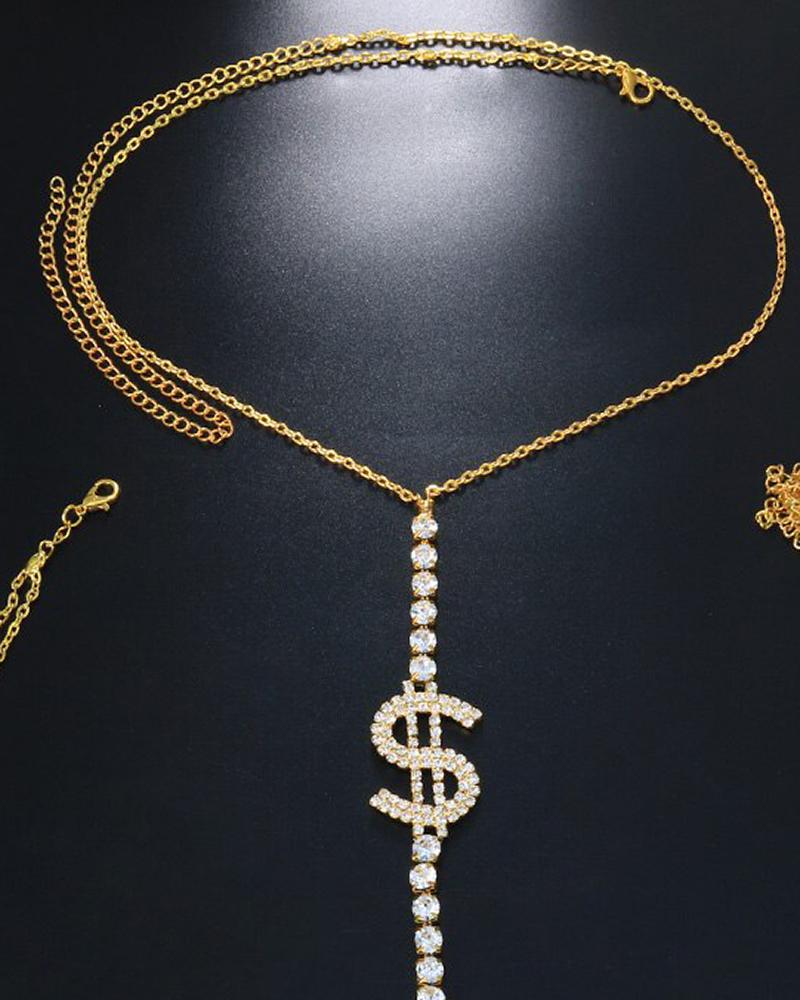 Rhinestone Decor Dollar Pattern Body Chain, Gold