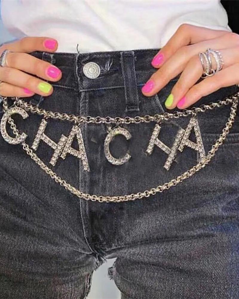 Rhinestone Decor Letter Pattern Waist Chain, Style1