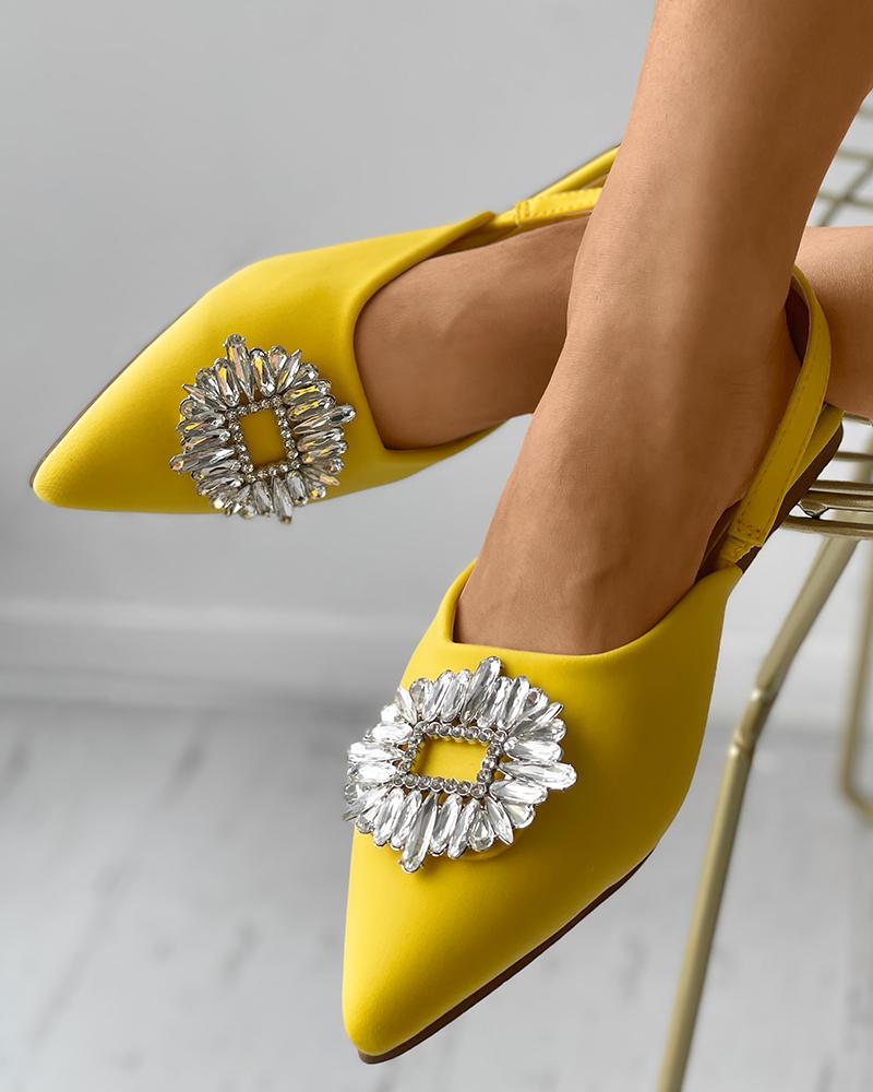 Rhinestone Decor Pointed Toe Slingback Shoes, Yellow