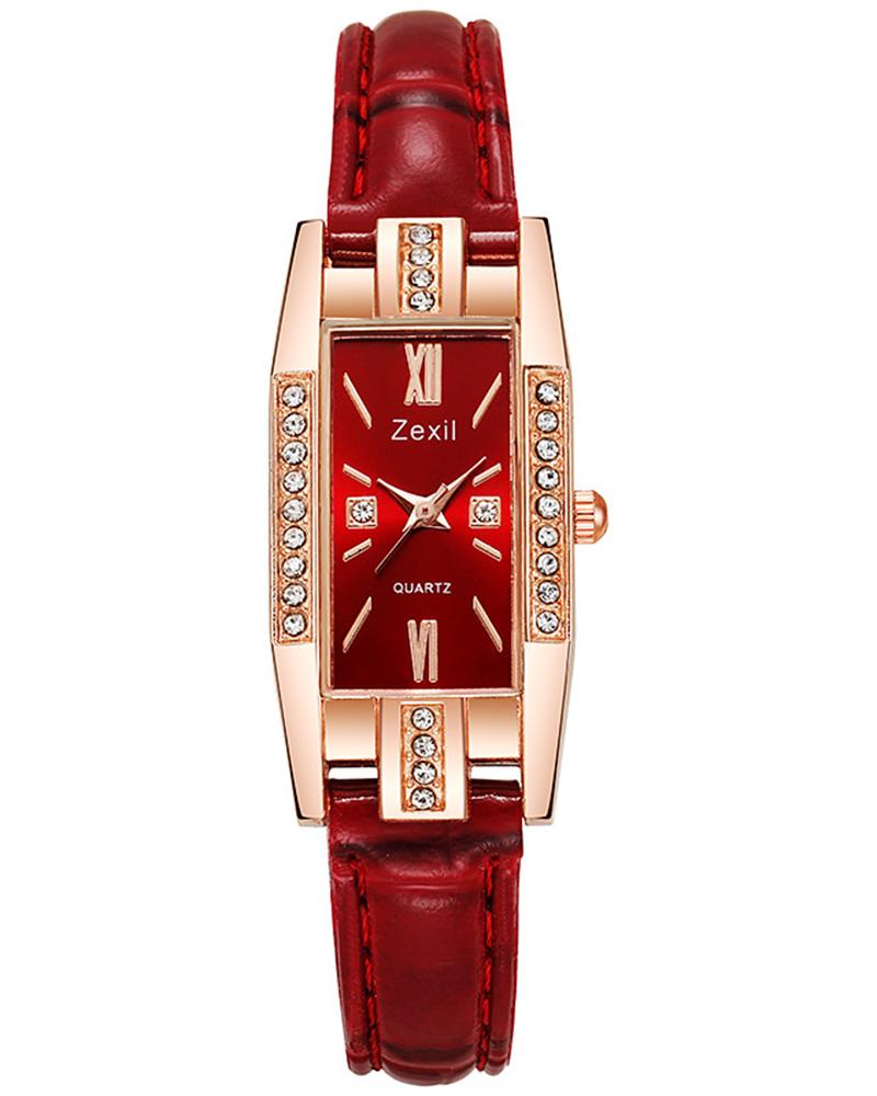 Rhinestone Decor Rectangle Quartz Watch, Red