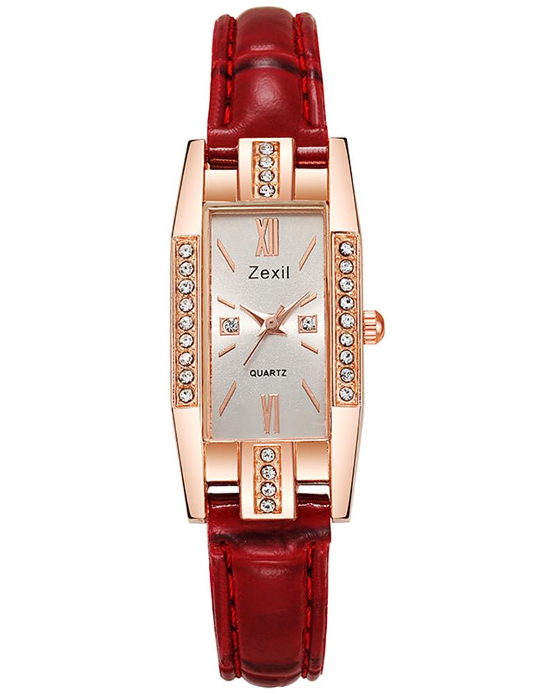 Rhinestone Decor Rectangle Quartz Watch, White