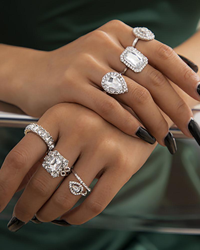 Rhinestone Decor Waterdrop & Geo Pattern Rings Set, Style1