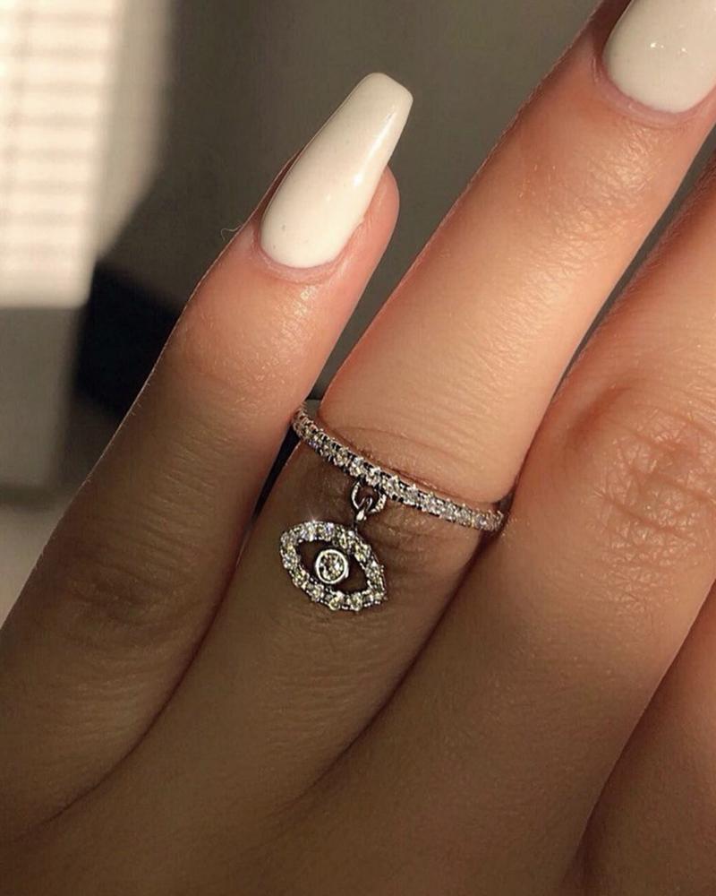 Rhinestone Drop Eye Pattern Ring, Silver
