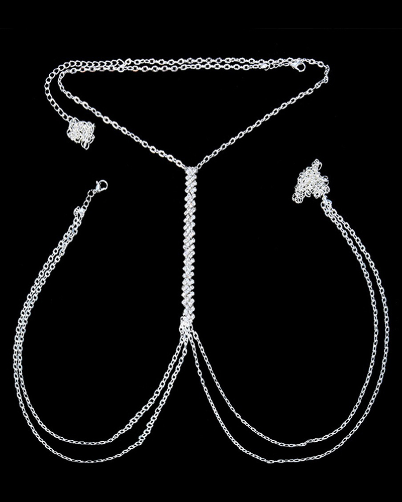2020 exaggerated body chain shining nightclub bikini swimming beach bra chain dance performance accessories, Slivery;golden