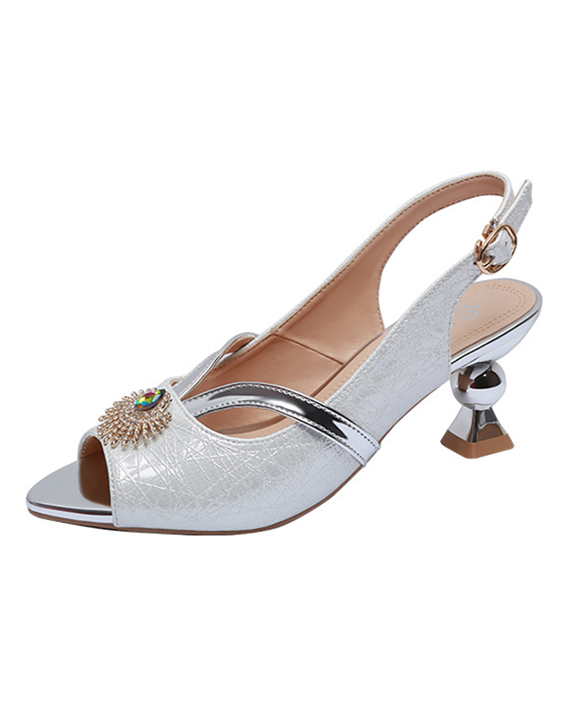 Rhinestone Peep Toe Slingback Pyramid Heels, Silver