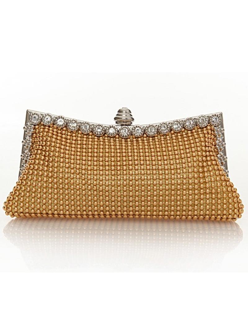 Rhinestone Removable Chain Strap Evening Handbag, Gold