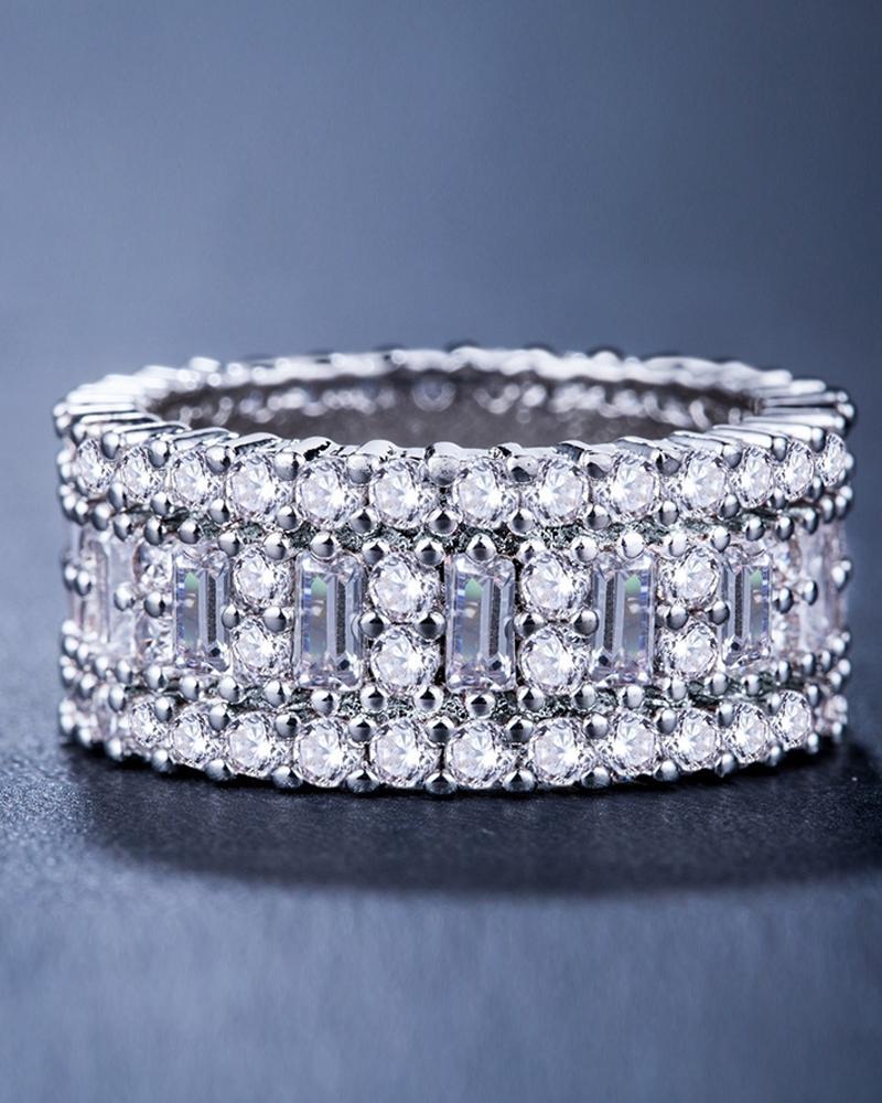 Rhinestone Studded Cutout Ring, Silver