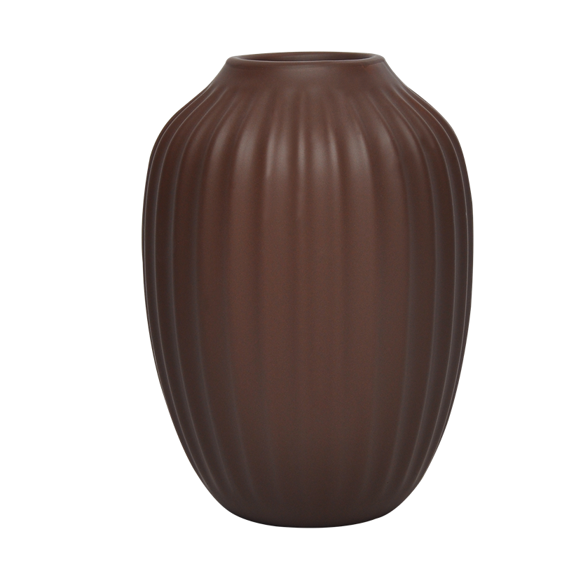 Ribbed ceramic vase matte brown 16. 5x23. 3 cm