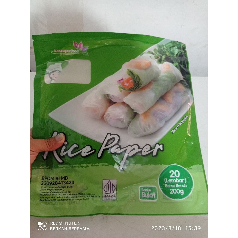 Rice paper HALAL dari Javasuperfood, adalah sejenis kulit lumpia yang Dibuat dari tepung beras. Rice paper digunakan setelah dicelupkan/diolesi dengan air matang hingga lembek. Rice paper dapat dibuat menjadi spring roll dengan isian sayuran segar, ayam, udang, ikan, atau daging. Atau bisa juga dibuat menjadi spring roll dengan isian manis, seperti buah segar, kacang-kacangan, dengan saus selai buah, madu, atau yoghurt.