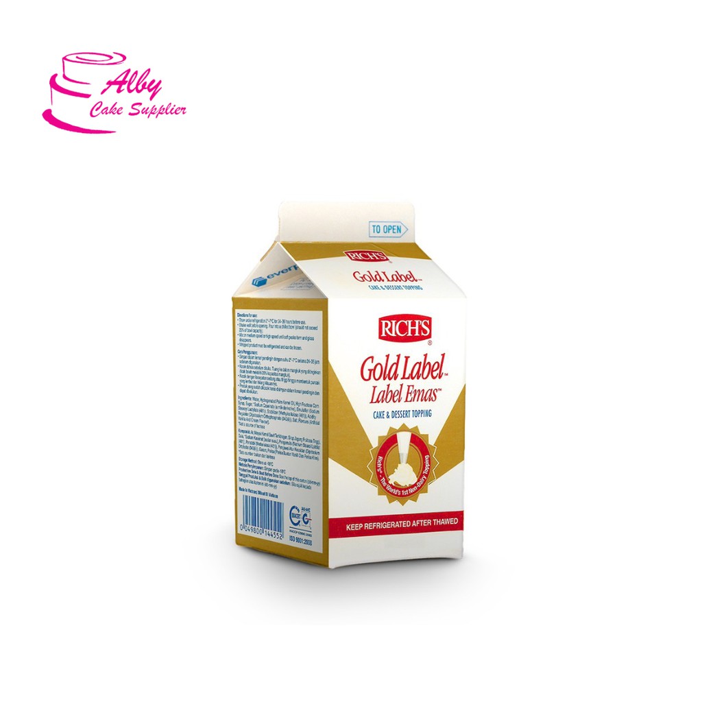 Richs gold label merupakan whipped cream berkualitas untuk segala kebutuhan anda. Cocok untuk di aplikasikan sebagai