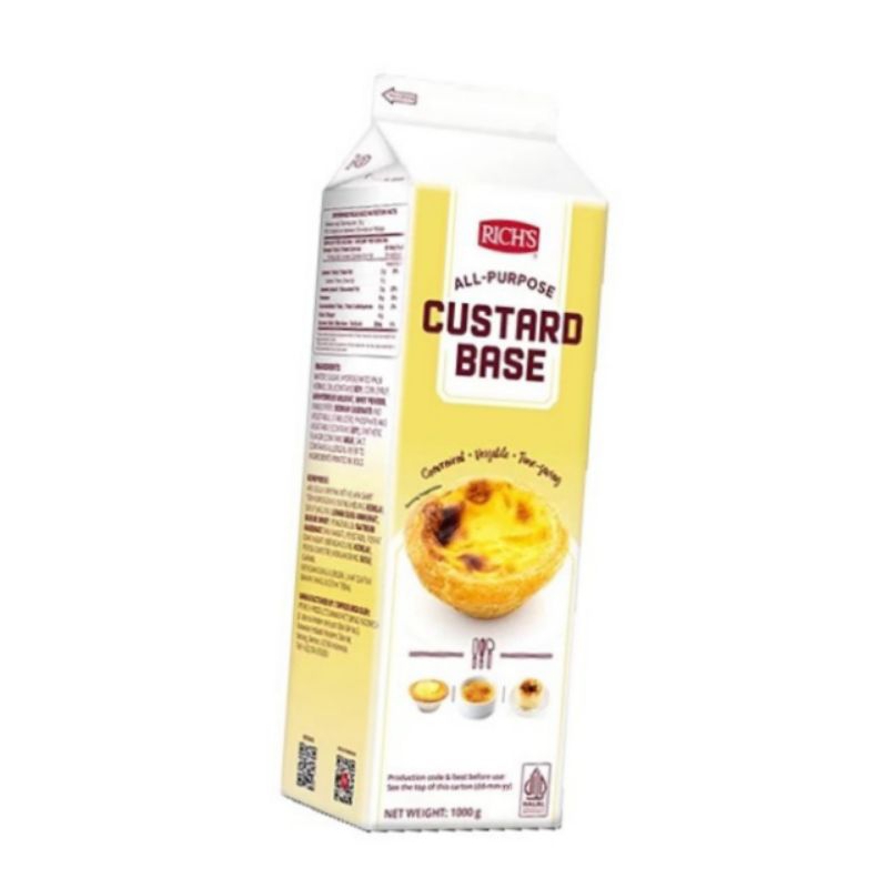 Rich All Purpose Custard Base adalah custard base cair siap pakai yang berbentuk serba guna. Produk ini memiliki rasa vanilla yang manis dan milky.