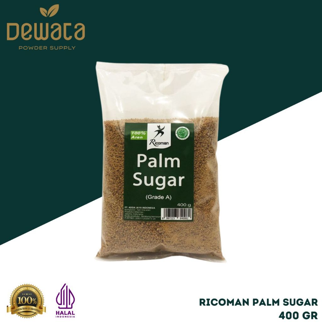 Ricoman Palm Sugar terbuat dari nira aren berkualitas tinggi, sehingga memiliki rasa yang lebih legit dan aroma yang wangi. Palm sugar ini dapat di aplikasikan pada bolu, cake, cookie, kopi, teh dll.
