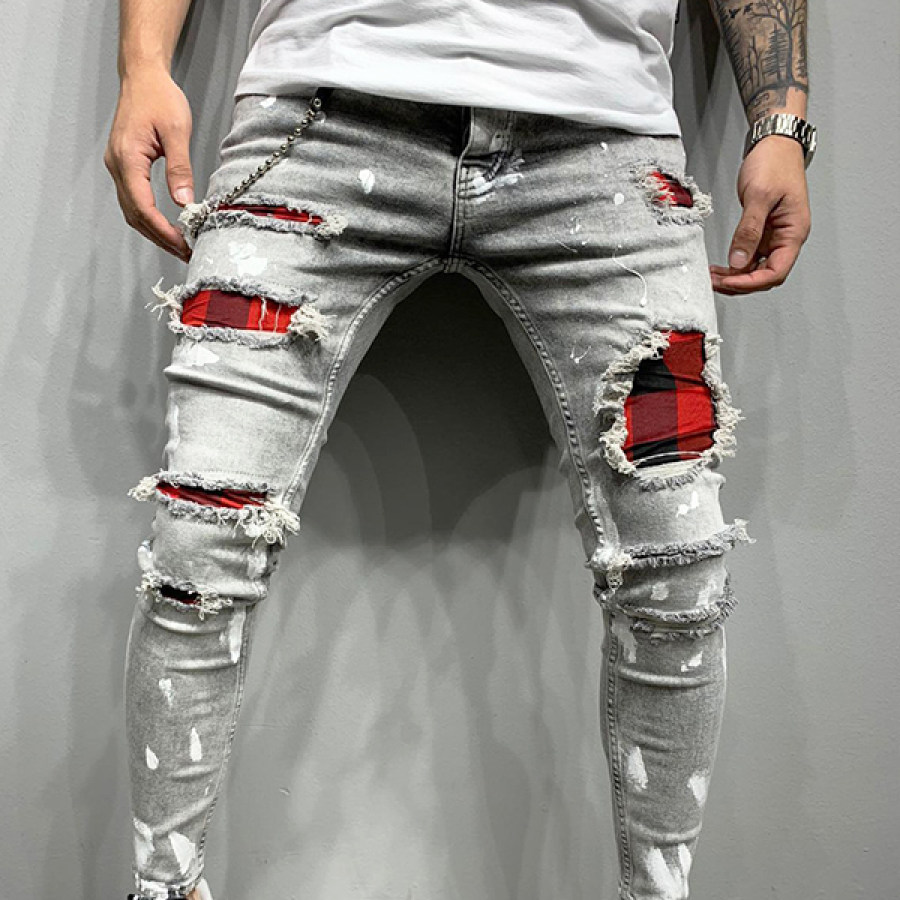 Ripped Beggar Pad Stretch Fashion Slim Jeans