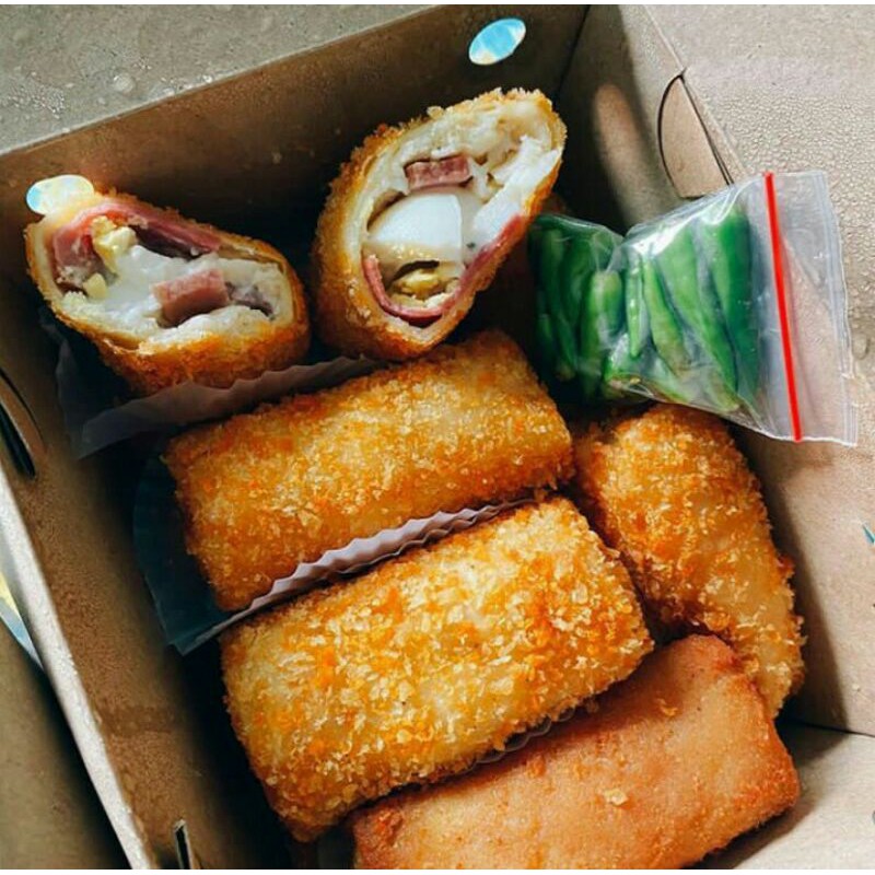 Risol sosis smoked, mayones, telur, keju Mozzarella