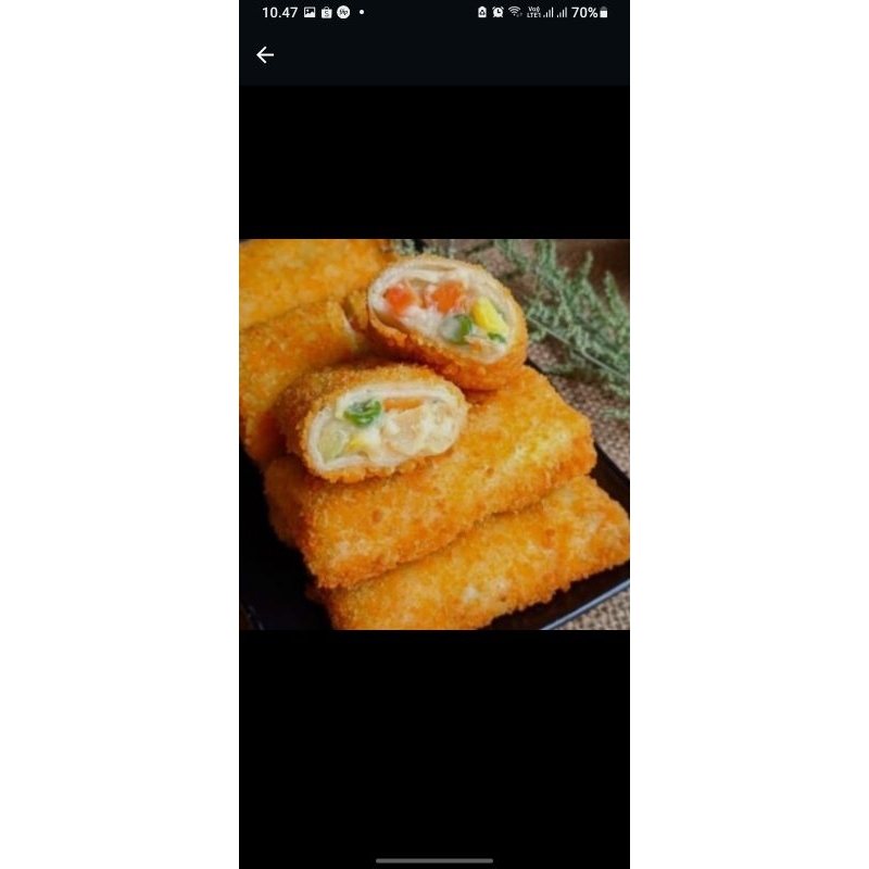 Risol dengan isian ragut sayur plus keju. Renyah di luar, creamy di dalam, dijual dalam bentuk frozen.