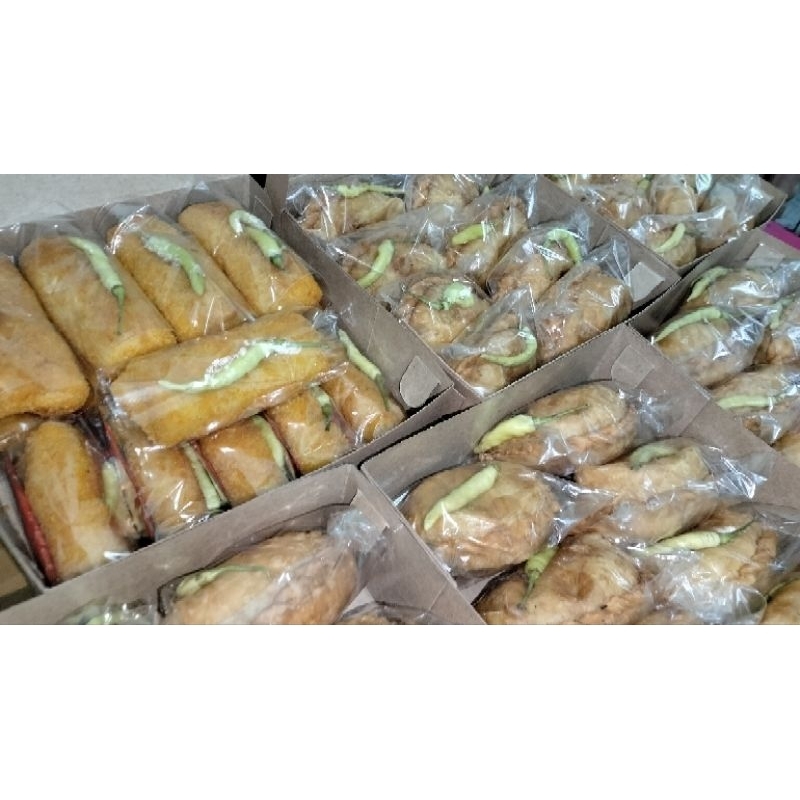 risol dengan isian roghout (kentang, wortel, ayam) ditambah potongan telur rebus.