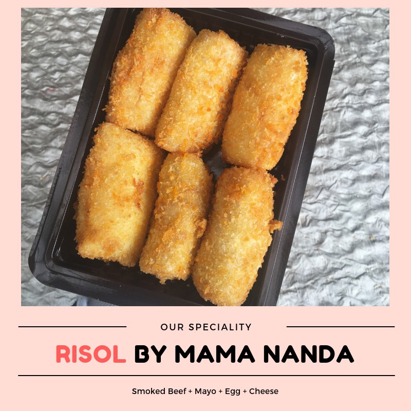 Risol dengan isi smoked beef, mayonaisse, telur, dan keju.