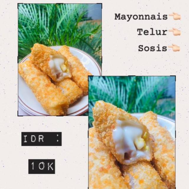Isian: telur rebus, sosis, mayonnais