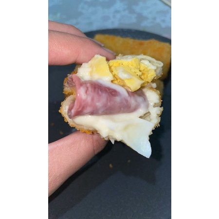 Risoles dengan isian potongan smoked beef, telur rebus, keju kraft parut, dan spesial mayonaise pedas racikan aghnia kitchen