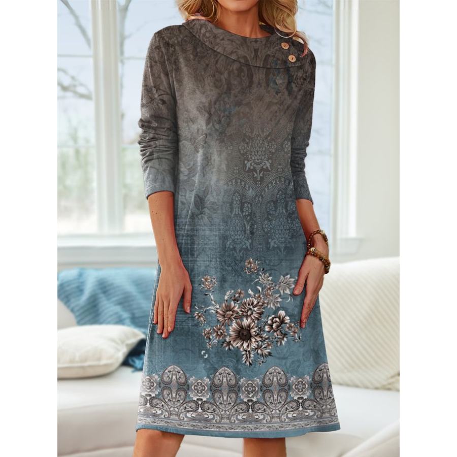 femmes robes,robe à col rond et manches longues à imprimé floral