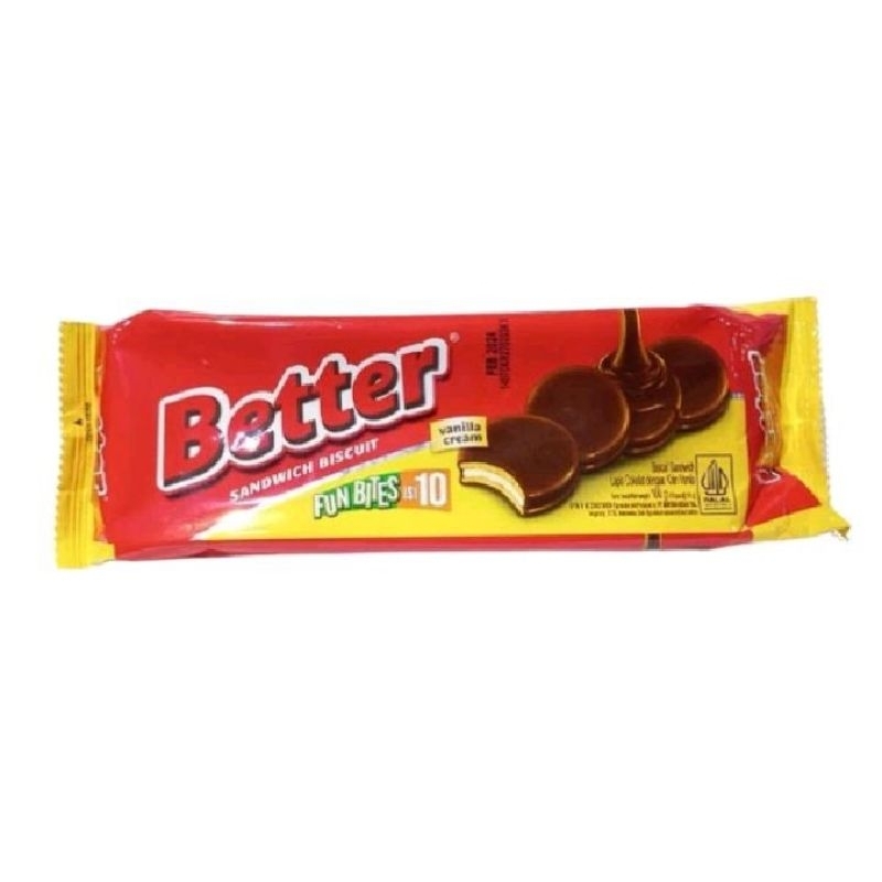 BETTER Vanilla merupakan sandwich biskuit dengan krim vanila lembut berlapis cokelat yang hadir dengan rasa lezat dan nikmat. Sandwich biskuit ini juga dibuat dari coklat dan biskuit pilihan yang diproses secara modern dan higienis. Sandwich biskuit ini dapat disantap secara langsung dan dinikmati saat santai bersama keluarga.