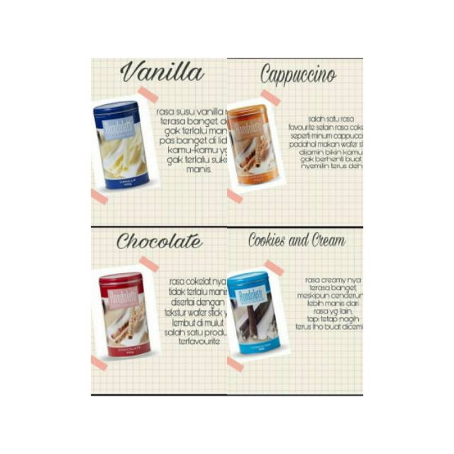 Ada 4 varian rasa: Choco, Vanila, Cappucino, dan Cookies Cream.