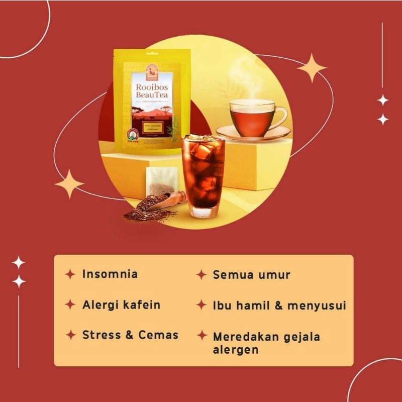 Faktanya, Rooibos BeauTea yang mengandung 100% teh rooibos ini sangat kaya akan antioksidan yang dapat membantu meningkatkan sifat rileks pada tubuh lho!