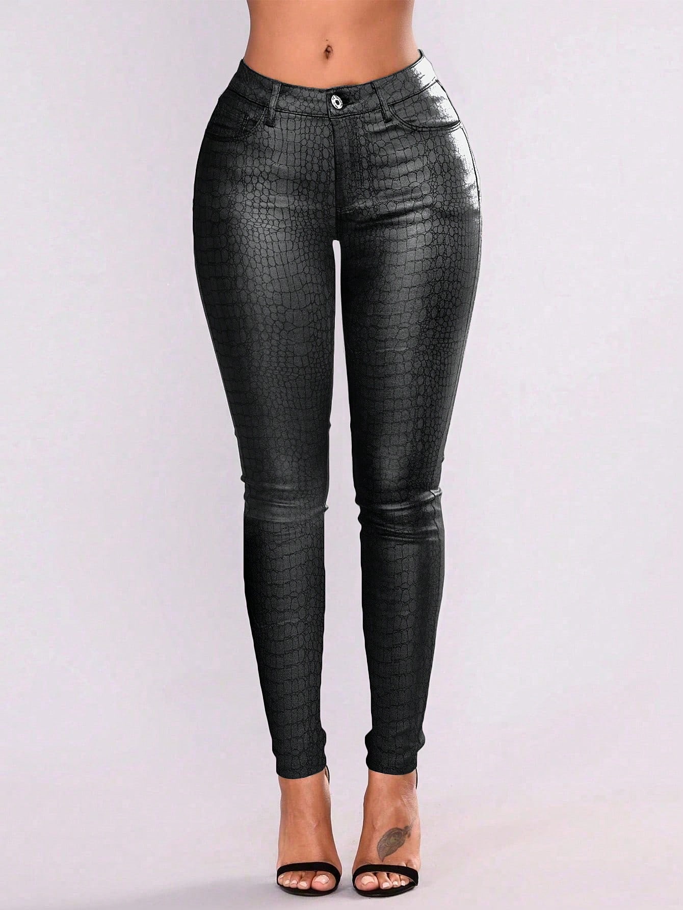 Rose Beauty A Rave Punk с высокой талией и косыми карманами из искусственной кожи с тиснением под крокодила, зауженные узкие брюки до щиколотки, сексуальные брюки для вечеринок S чёрный