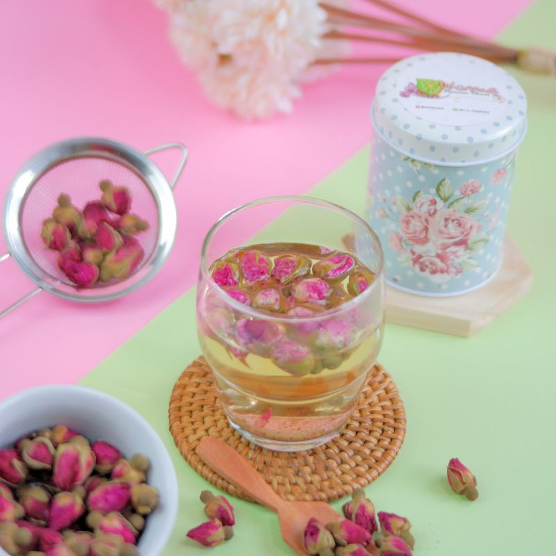 Teh Bunga yang berasal dari kuncup bunga mawar, mengandung vit C dan antioksidan Yang sangat berkhasiat untuk menjaga kecantikkan kulit.