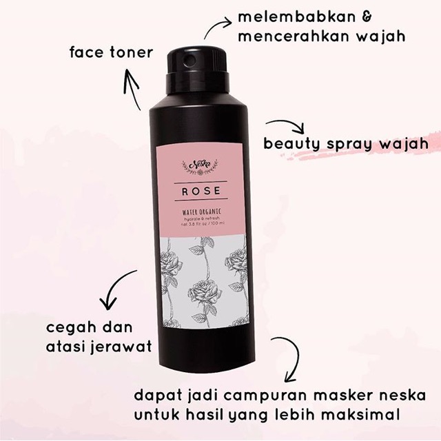 rose water ini bisa menjadi campuran masker sis, dapat digunakan toner, melembabkan dan mencerahkan wajah, cegah dan atasi jerawat