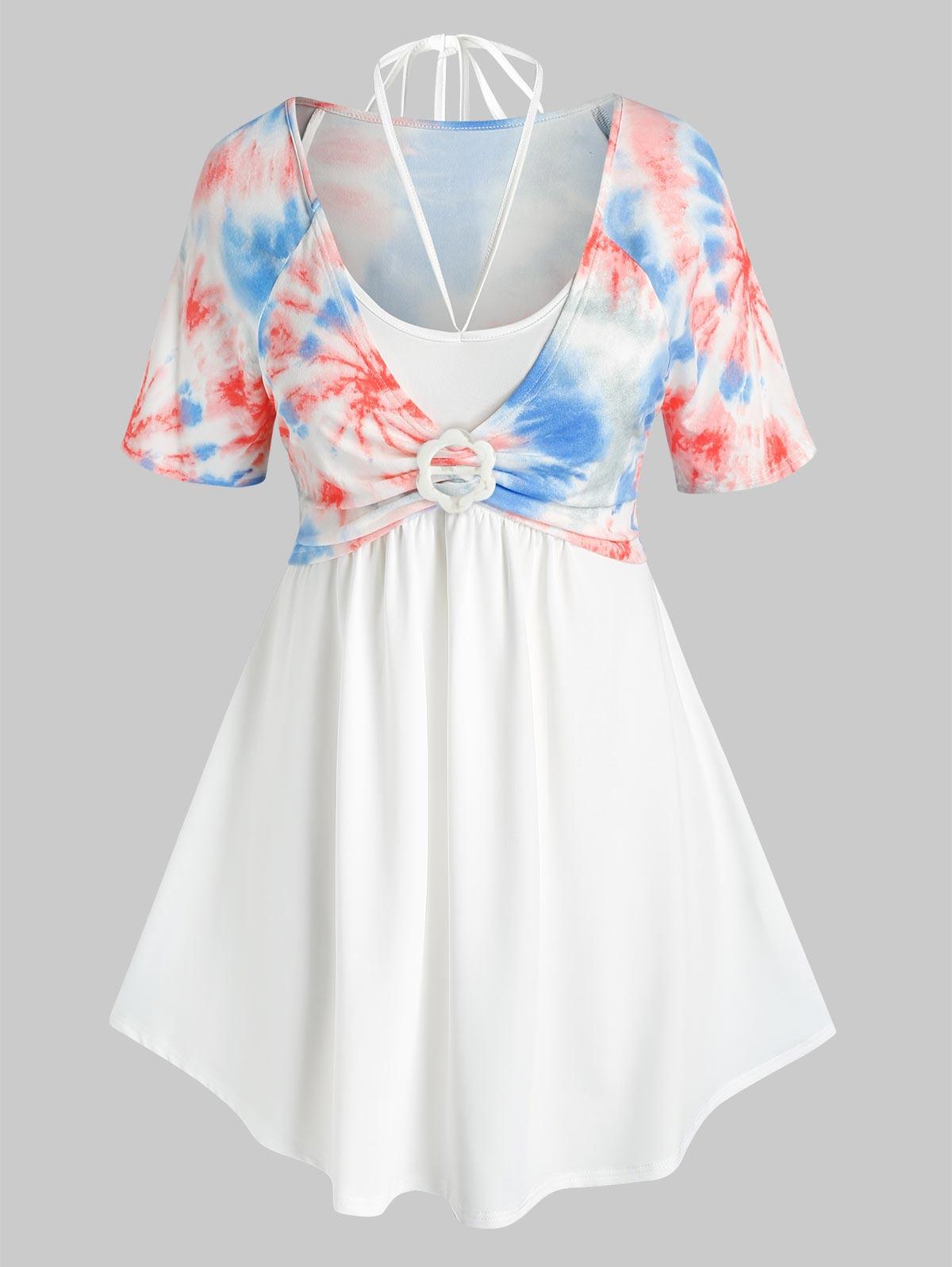 Rosegal Plus Size Топ-двойка из искусственной кожи с завязками и принтом тай-дай