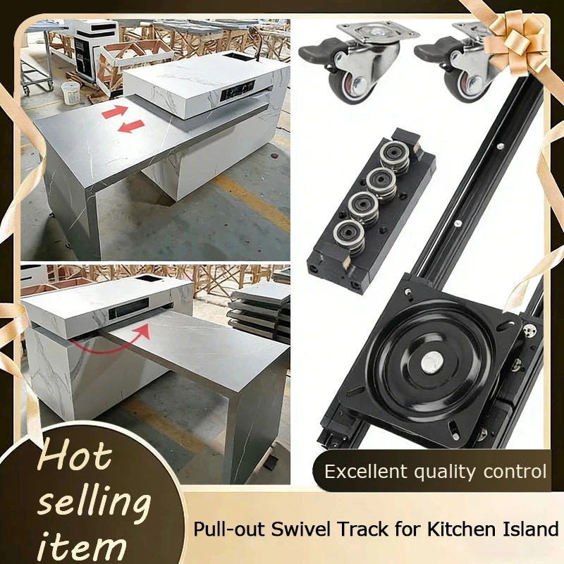 Rotating & Telescopic Kitchen Island Slide Rail Hardware Pull-Out Sliding Track Guide Rail System For Extendable Dining Table