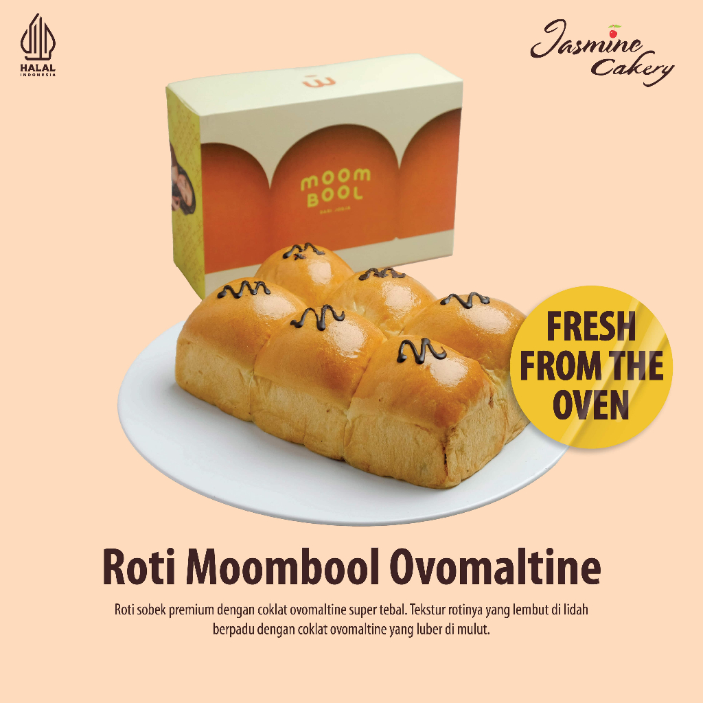 Moombool Ovomaltine adalah roti sobek premium dengan coklat ovomaltine super tebal. Tekstur rotinya yang lembut di lidah berpadu dengan coklat ovomaltine yang luber di mulut